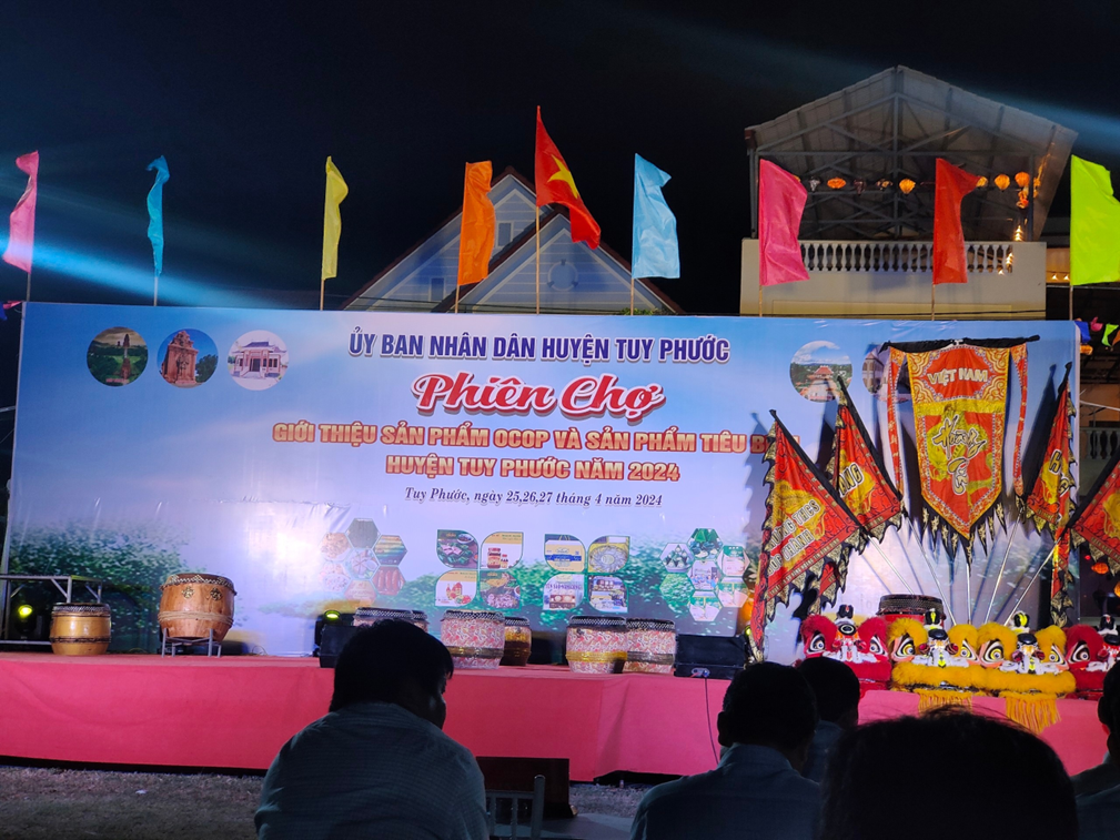 Từ ngày 25 đến ngày 27/4/2024, UBND huyện Tuy Phước, tỉnh Bình Định tổ chức Phiên chợ giới thiệu sản phẩm OCOP và sản phẩm tiêu biểu huyện tại công viên Can Lộc, nhằm tạo chuỗi liên kết hiệu quả, đồng bộ giữa việc sản xuất, bao tiêu sản phẩm nông sản, thuỷ sản, hàng hoá của doanh nghiệp, cơ sở sản xuất và nhân dân trong huyện. Phiên chợ có 22 gian hàng, trưng bày, giới thiệu hơn 130 sản phẩm đặc trưng, đặc sản, tiềm năng địa phương và sản phẩm đạt chuẩn OCOP.