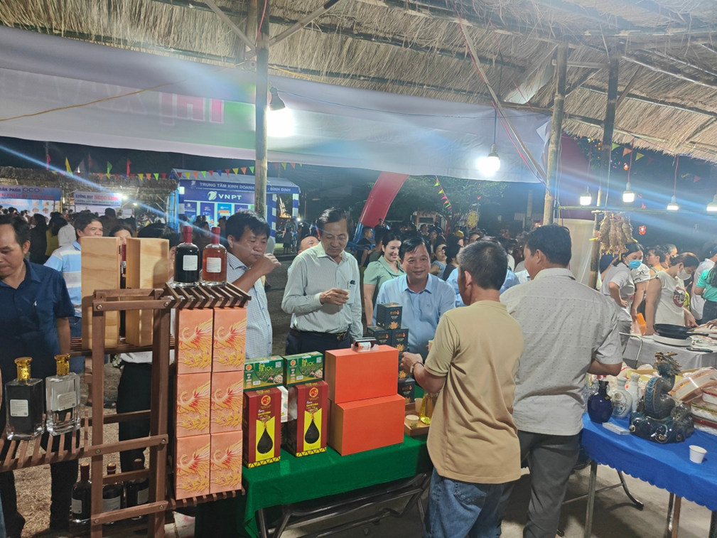 Các gian hàng không chỉ bày bán sản phẩm mà còn thể hiện nét đặc sắc trong cách trưng bày, sắp xếp, qua đó giới thiệu đến khách tham quan những sản phẩm tinh túy, đặc trưng của vùng đất Bình Định. Với hơn 130 mặt hàng đa dạng từ thực phẩm, đồ uống, sản phẩm thủ công mỹ nghệ đến các sản phẩm có giá trị văn hóa, phiên chợ tạo ra sức hấp dẫn lớn, thu hút sự quan tâm của người dân trong và ngoài huyện.