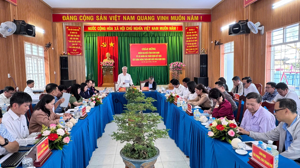 Ngày 21/3/2025, Phó Giám đốc Sở Nông nghiệp và Môi trường, Chánh Văn phòng Điều phối xây dựng nông thôn mới tỉnh Bình Định Hồ Đắc Chương, dẫn đầu đoàn công tác cùng với các Sở, ngành liên quan kiểm tra thực tế kết quả xây dựng nông thôn mới nâng cao, nông thôn mới kiểu mẫu phục vụ công tác thẩm định, đề nghị xét công nhận xã Nhơn Hải, thành phố Quy Nhơn đạt chuẩn nông thôn mới Kiểu mẫu về Văn hóa - Du lịch năm 2024. Cùng làm việc với đoàn có ông Nguyễn Hữu Khúc, Phó Bí thư Thành ủy, Chủ tịch UBND thành phố; lãnh đạo các phòng, ban, đơn vị liên quan của thành phố. Lãnh đạo Đảng ủy, Ủy ban nhân dân và các ngành liên quan của xã Nhơn Hải.Trước khi đi vào làm việc, Đoàn đã tiến hành kiểm tra thực tế các tiêu chí trên địa bàn xã thực hiện như: Giao thông, chợ, cơ sở vật chất văn hóa, thôn thông minh,… Đặc biệt, kiểm tra các chỉ tiêu, tiêu chí về Kiểu mẫu Văn hóa - Du lịch; Đồng thời, đánh giá kết quả thực hiện duy trì, nâng cao chất lượng các tiêu chí của bộ tiêu chí xã nông thôn mới nâng cao và bộ tiêu chí xã nông thôn mới kiểu mẫu theo Quyết định số 2190/QĐ-UBND ngày 16/6/2023 của Ủy ban nhân dân tỉnh.
