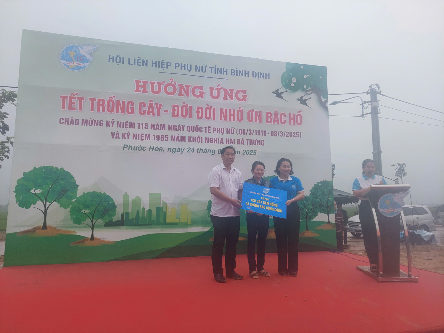 Sáng ngày 24/02/2025, Hội Liên hiệp Phụ nữ tỉnh Bình Định cùng các cấp Hội, đoàn thể và các Sở, ban, ngành địa phương tổ chức các hoạt động hưởng ứng nhằm nhấn mạnh tầm quan trọng của ngày “Tết trồng cây”, đồng thời, tôn vinh vai trò của người phụ nữ với chủ đề “Phụ nữ vun trồng tương lai - vì lợi ích mười năm trồng cây, vì lợi ích trăm năm trồng người”.Tham dự buổi lễ phát động có các đồng chí: Lê Minh Lực - Phó ban Ban Dân vận Tỉnh ủy; Nguyễn Thị Bích Ly - Phó ban Ban Tuyên giáo Tỉnh ủy; Hồ Thị Kim Thu - Phó Chủ tịch Ủy ban Mặt trận Tổ quốc Việt Nam tỉnh; Hà Thị Thanh Hương - Phó Giám đốc Sở Tài nguyên và Môi trường; Nguyễn Thị Tố Trân - Phó Giám đốc Sở Nông nghiệp và Phát triển nông thôn. Ngoài ra, còn có sự hiện diện của bà Lâm Ánh Vy - Ủy viên Ban Chấp hành Hội Liên hiệp Phụ nữ Việt Nam, Phó Chủ tịch hội Doanh nhân trẻ tỉnh Bình Định; bà Đồng Thị Ánh - Phó Chủ tịch hiệp Hội Doanh nhân nữ Việt Nam, Chủ tịch Hội Nữ doanh nhân tỉnh; các đồng chí là đại biểu của địa phương cùng các phóng viên Đài Phát thanh - Truyền hình Bình Định, phóng viên Báo Bình Định cũng có mặt đông đủ để góp phần tạo nên thành công của buổi lễ.