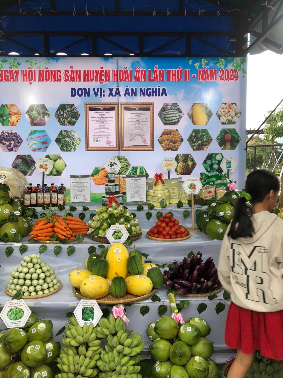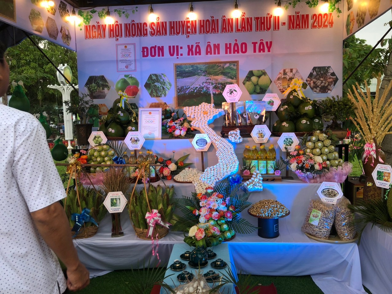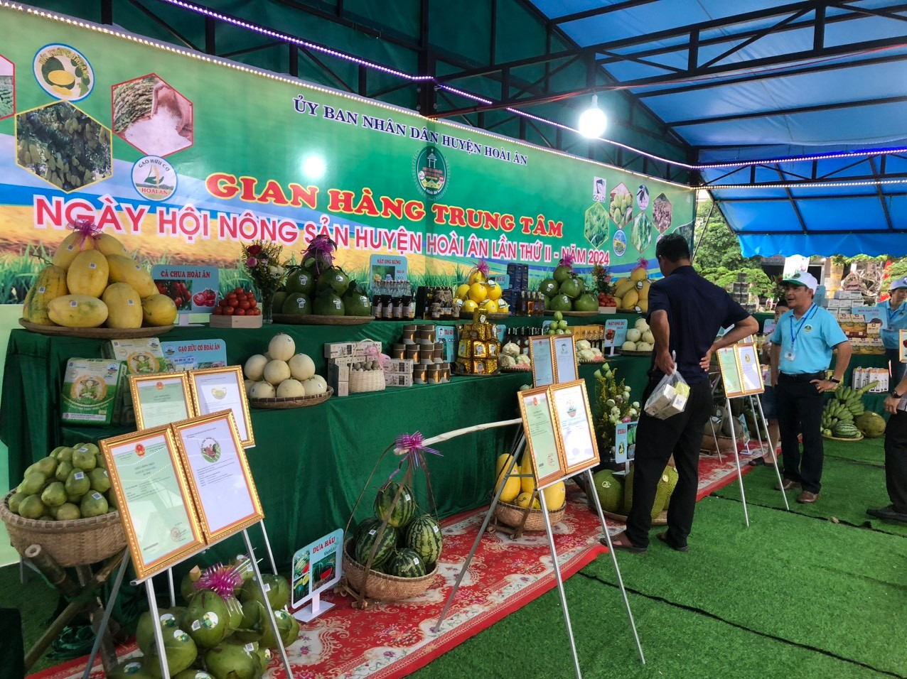 Tại buổi lễ, lãnh đạo UBND tỉnh trao chứng nhận đăng ký nhãn hiệu sản phẩm của Cục Sở hữu trí tuệ cho 3 sản phẩm: tiêu hột Hoài Ân, mít thái Hoài Ân và gạo Hữu cơ Hoài Ân. Lãnh đạo UBND huyện trao chứng nhận sản phẩm OCOP cho 19 sản phẩm. Các công ty, doanh nghiệp, đơn vị, tổ chức, cá nhân và các đơn vị có liên quan ký kết hợp đồng liên kết tiêu thụ một số sản phẩm nông nghiệp của huyện Hoài Ân.