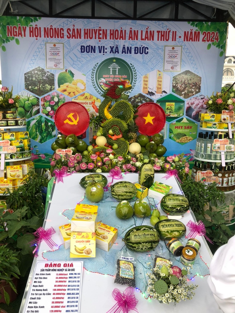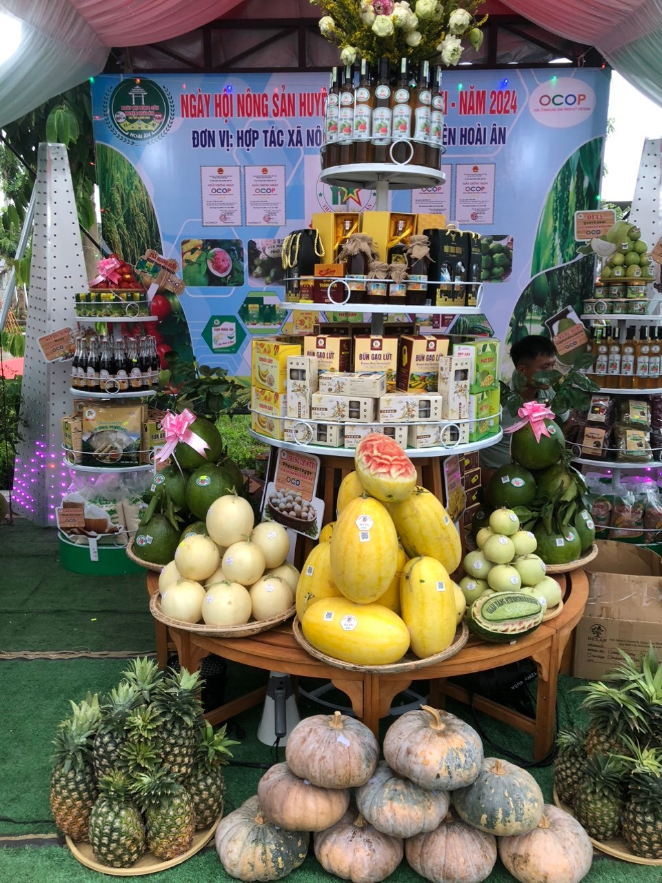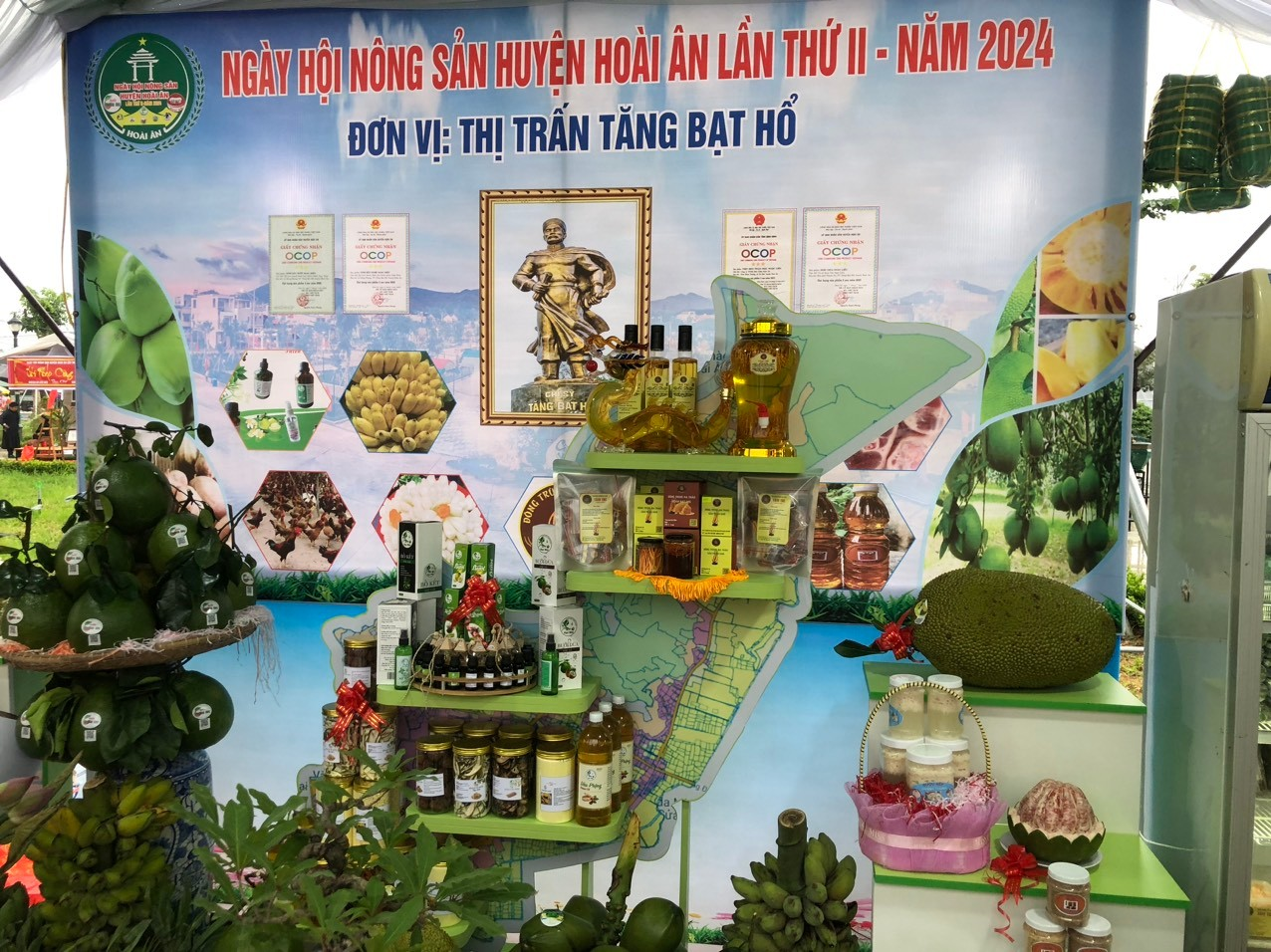 Tại buổi lễ, lãnh đạo UBND tỉnh trao chứng nhận đăng ký nhãn hiệu sản phẩm của Cục Sở hữu trí tuệ cho 3 sản phẩm: tiêu hột Hoài Ân, mít thái Hoài Ân và gạo Hữu cơ Hoài Ân. Lãnh đạo UBND huyện trao chứng nhận sản phẩm OCOP cho 19 sản phẩm. Các công ty, doanh nghiệp, đơn vị, tổ chức, cá nhân và các đơn vị có liên quan ký kết hợp đồng liên kết tiêu thụ một số sản phẩm nông nghiệp của huyện Hoài Ân.