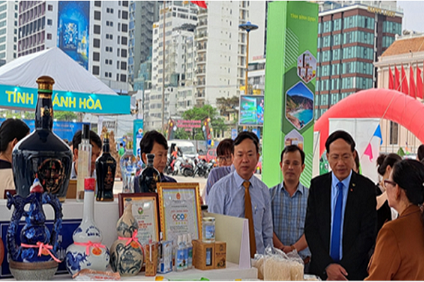 2. Trưng bày, triển lãm sản phẩm xúc tiến thương mại, đầu tư, du lịch để giới thiệu sản phẩm thế mạnh và những tiềm năng của tỉnh: Sở Công Thương đã trưng bày giới thiệu 03 lĩnh vực triển lãm Xúc tiến thương mại, đầu tư và du lịch, cụ thể: các sản phẩm công nghiệp chủ lực, sản phẩm OCOP, sản phẩm xuất khẩu và có tiềm năng xuất khẩu với sự tham gia của 15 doanh nghiệp, HTX, cơ sở sản xuất trên địa bàn tỉnh với các mặt hàng như: Xí nghiệp Thắng Lợi – CN Công ty CP Phú Tài (Đồ gỗ ngoại thất), Xí nghiệp 380 – CN Công ty CP Phú Tài (Đá), Công ty TNHH Delta Galil (Dệt may), Công ty CP Thủy sản Bình Định (Cá ngừ đại dương và các loại cá), Công ty TNHH Sachi Nguyễn (bánh tráng các loại), Công ty TNHH Bidir Hoàng Long, Cơ sở Rượu bà đá Thành Tâm (rượu bàu đá), Công ty CP SX TM DV Tiến Phát (bột ca cao, trà gừng), HTX Nông nghiệp Ngọc An (Dầu dừa các loại, bánh tráng nước dừa), HTX sản xuất Nấm Anvies (Nấm sấy các loại, hạt nêm nấm), Cở sở chả cá Thanh Vân (Chả cá, chả ram tôm đất), Cơ sở sản xuất bún khô Phương Anh (bún khô các loại), Cơ sở Ngũ cốc – Trà hoa Cô Ba Bình Định, Cơ sở SX và KD Nông sản Khánh Giang (Ngũ cốc, Trà hoa, Bánh thuyền hạt), Cơ sở Nguyễn Cảnh Duy ( Trà Dung, Trà Đinh Lăng, Bột Tía tô, Rau má sáy lạnh); giới thiệu thông tin các dự án cần thu hút đầu tư; giới thiệu thông tin điểm đến, sản phẩm và tour du lịch của tỉnh Bình Định.
